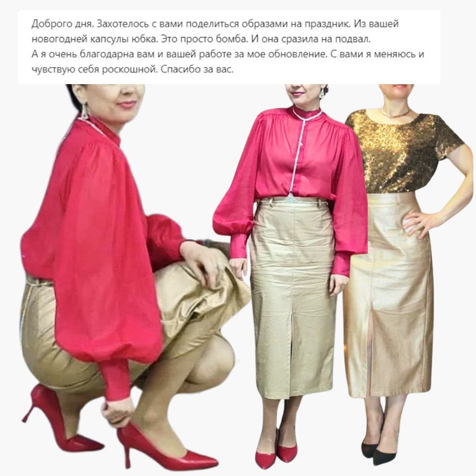 Это персональный подбор вещей под конкретное мероприятие с учетом формата события, вашей внешности и задач образа. По итогу вы получаете готовые варианты образов, собранные из актуальных вещей, которые легко купить.